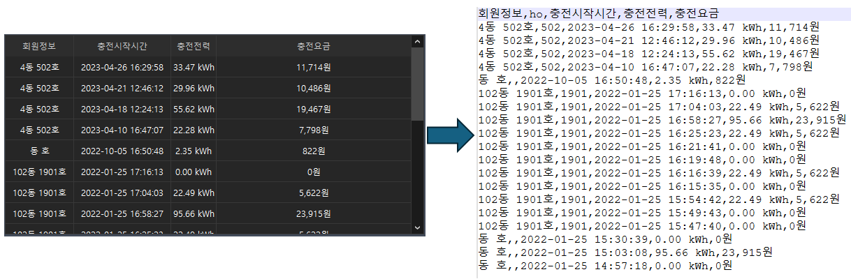 테이블에 표시된 내용을 csv 파일로 출력 합니다. |